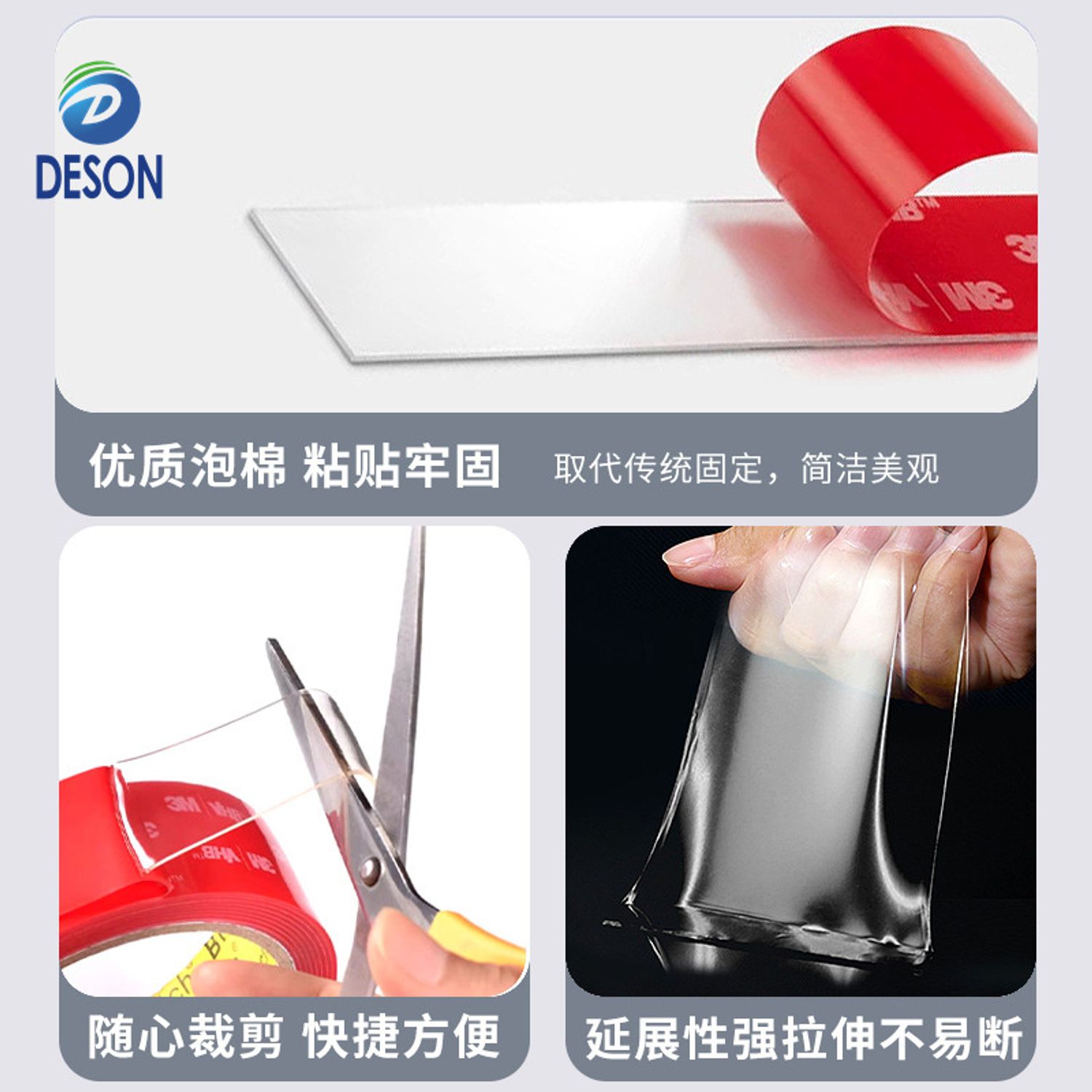 Deson Adhesive 3M4910 VHB Tape Custom Sizes Double Sided Acrylic Clear 1.0mm Thickness Foam Tape